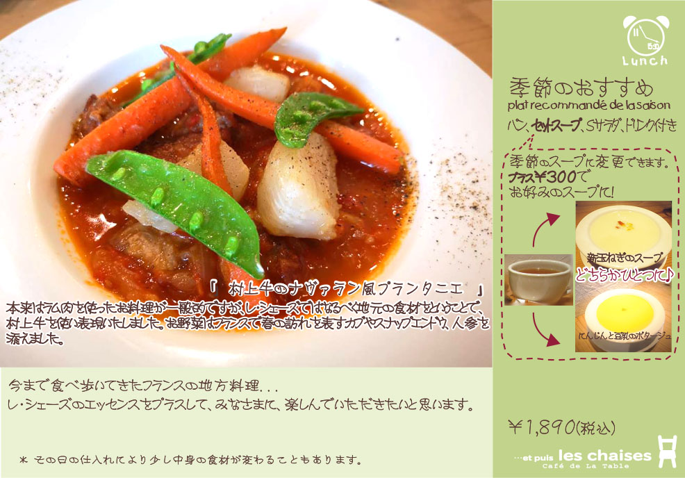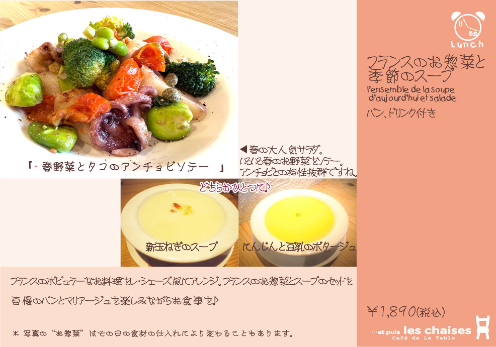 春野菜を添えた季節感あふれるおすすめメニューです。